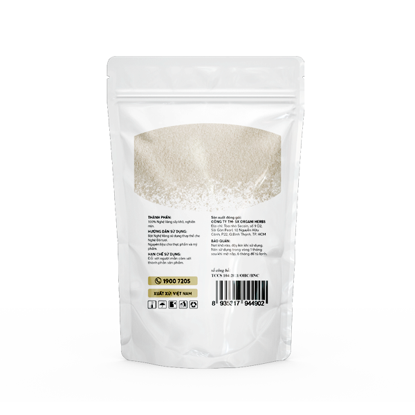 - 100% từ nghệ vàng làm sạch, nghiền mịn, không lẫn tạp chất, không chất bảo quản, không chất tạo màu.